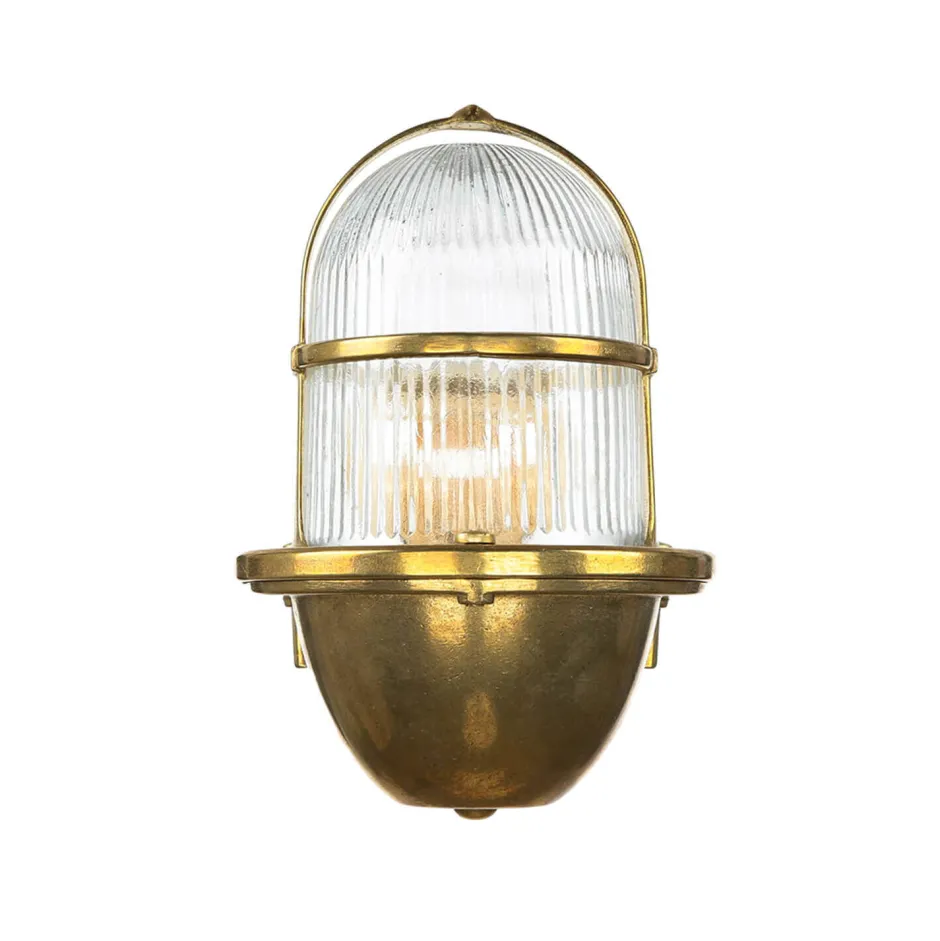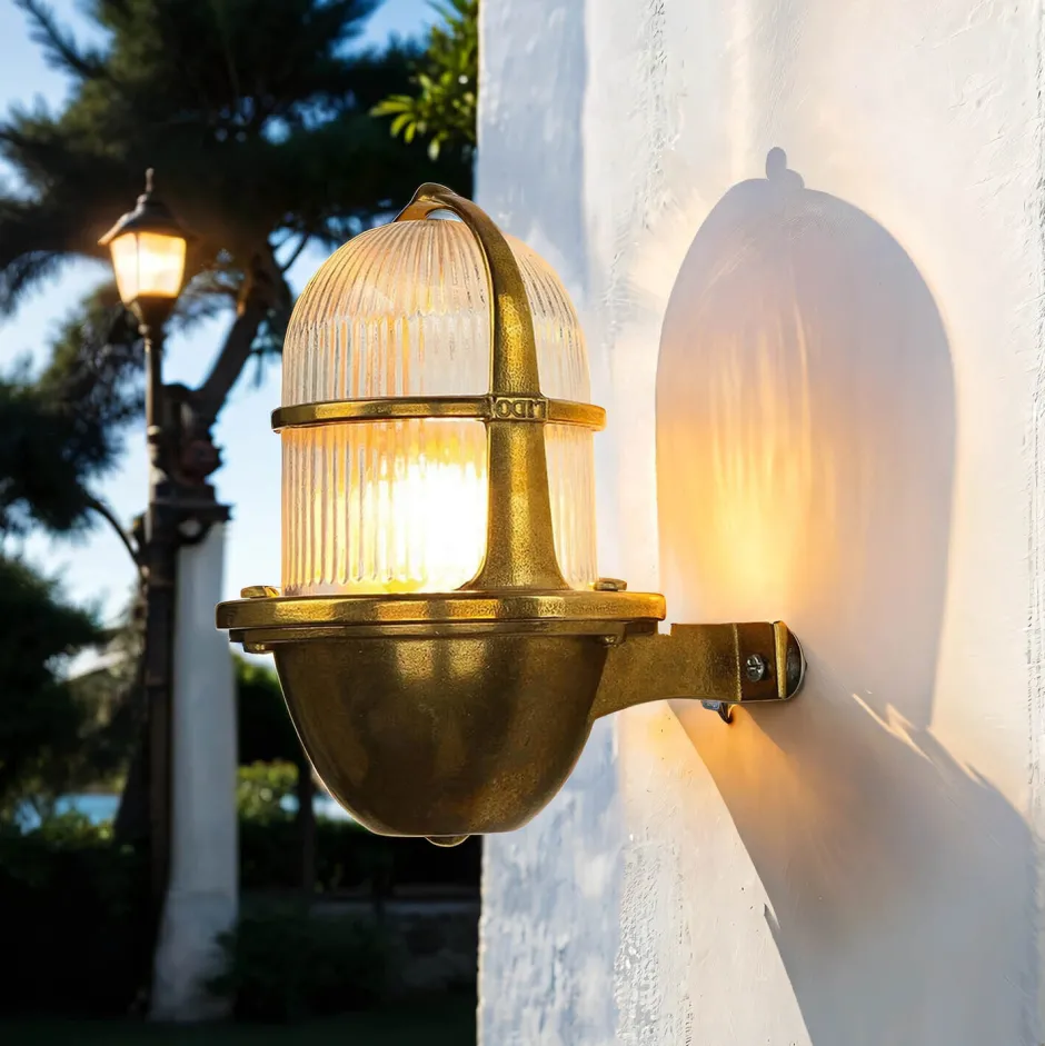 Rustikale Außenwandleuchte aus massivem Messing und Glas