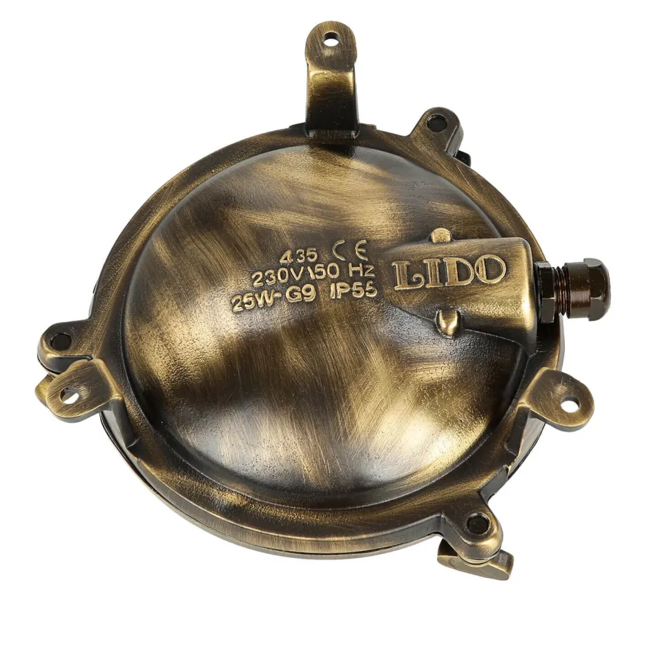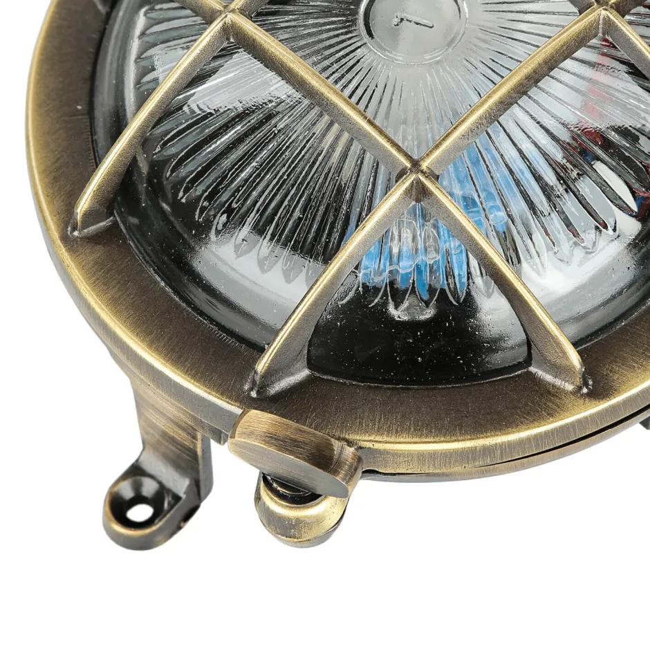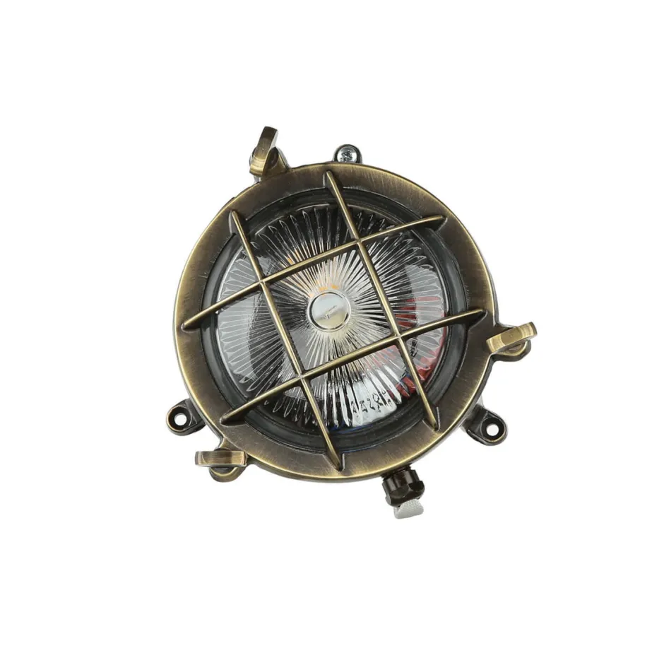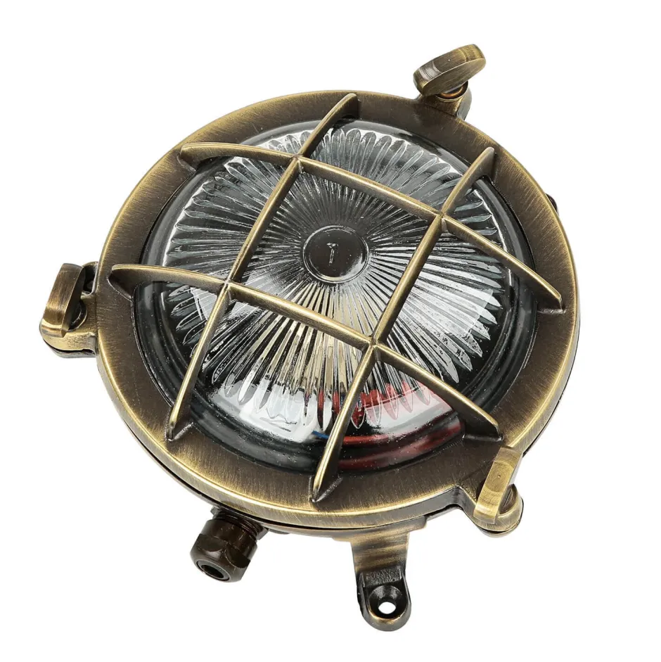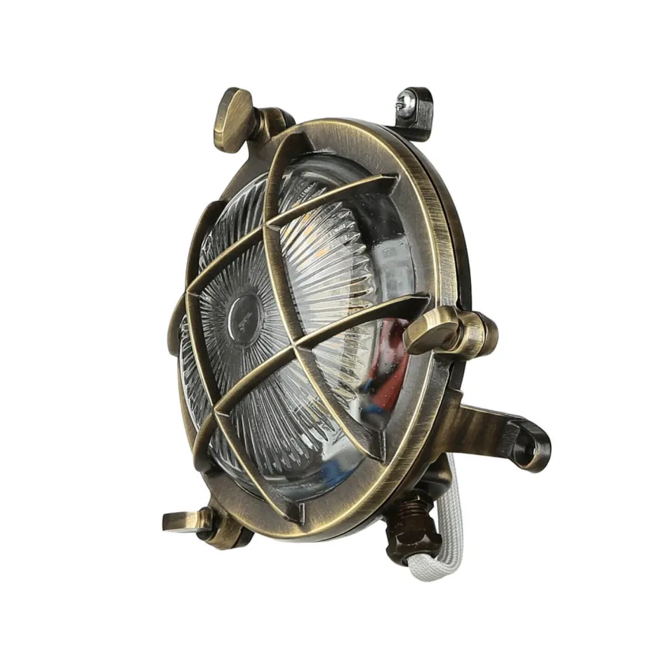 Maritime Außenwandlampe aus massivem Messing im Stil eines antiken Bullauges