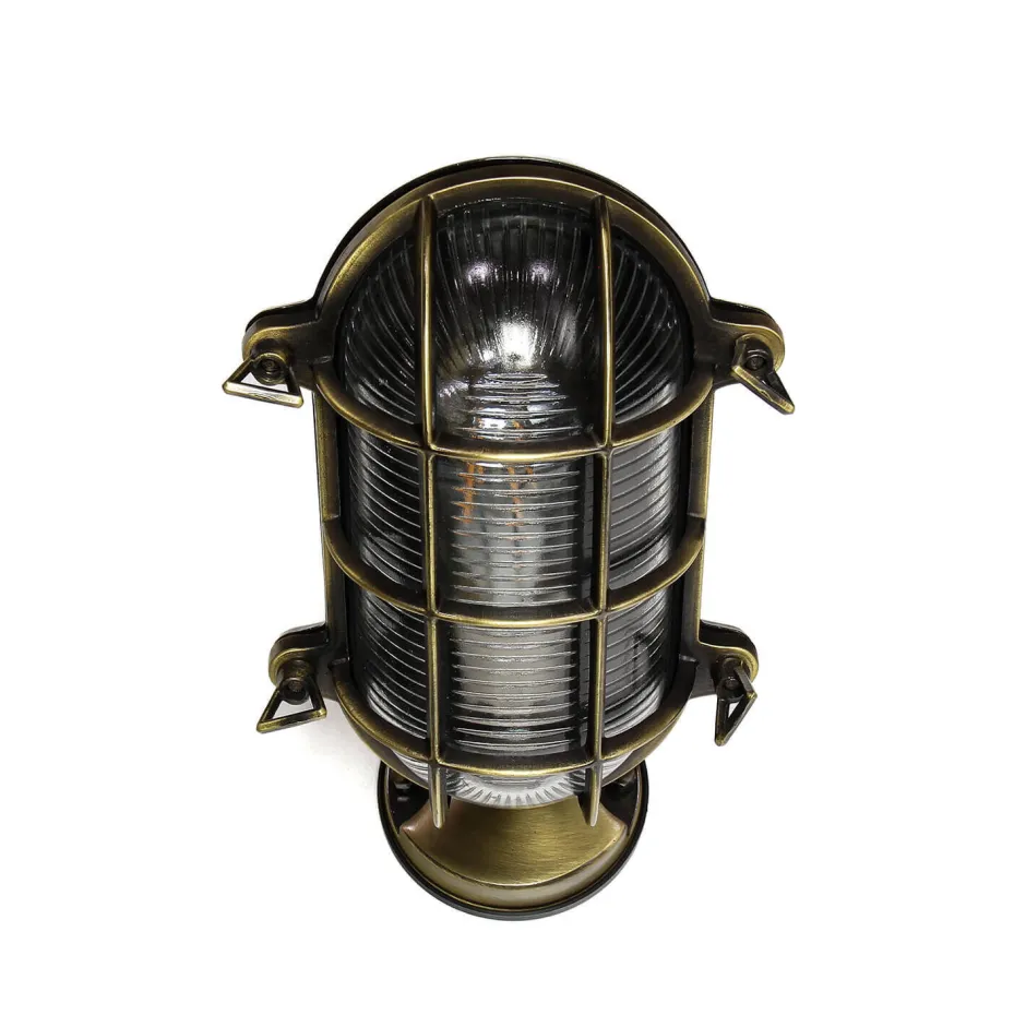 Die ideale Leuchte für Regionen mit hoher Luftfeuchtigkeit: Messing ist absolut rostfrei und der Schirm hat eine zusätzliche Dichtung, sodass das Leuchtmittel besonders geschützt ist