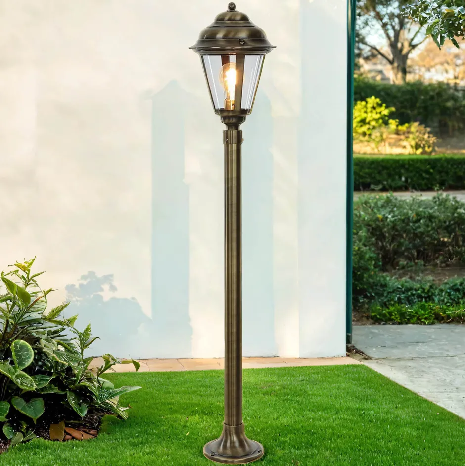 Rustikale Wegeleuchte aus massivem Messing und robustem Acrylglas