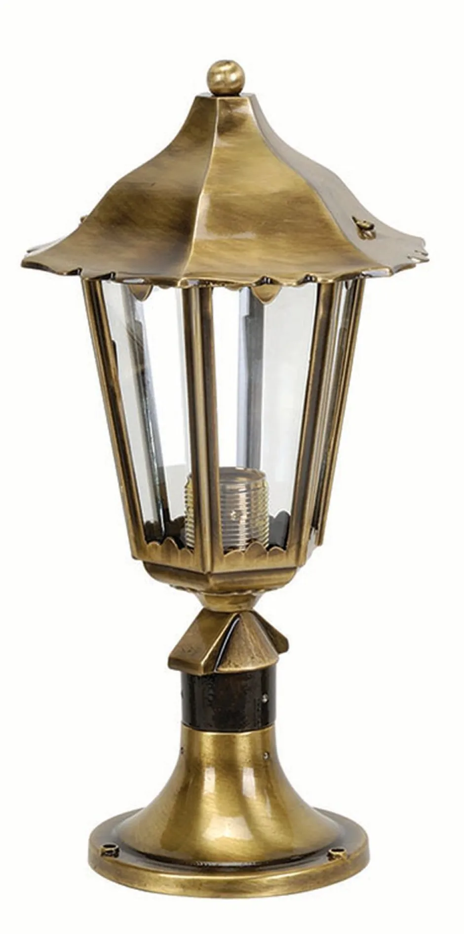 Rustikale Wegeleuchte aus massivem Messing und robustem Acrylglas