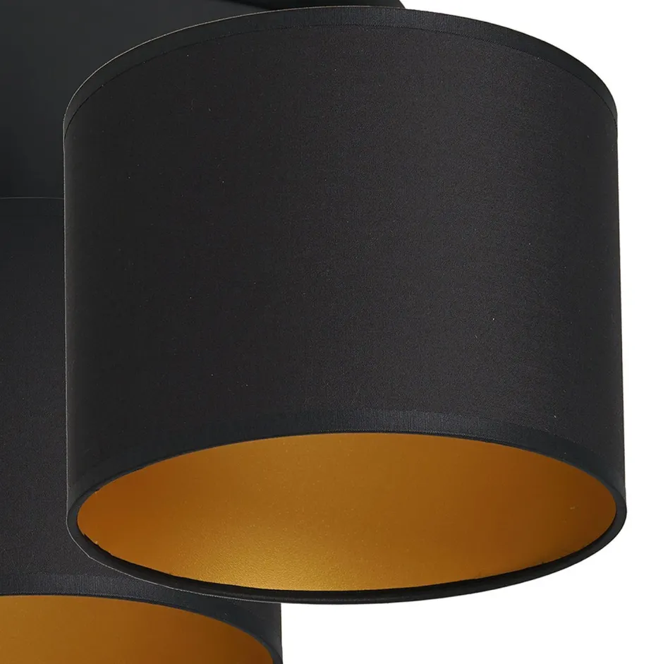 Zeitlose Deckenlampe aus lackiertem Stahl, Stoff und Kunststoff in Schwarz und Gold