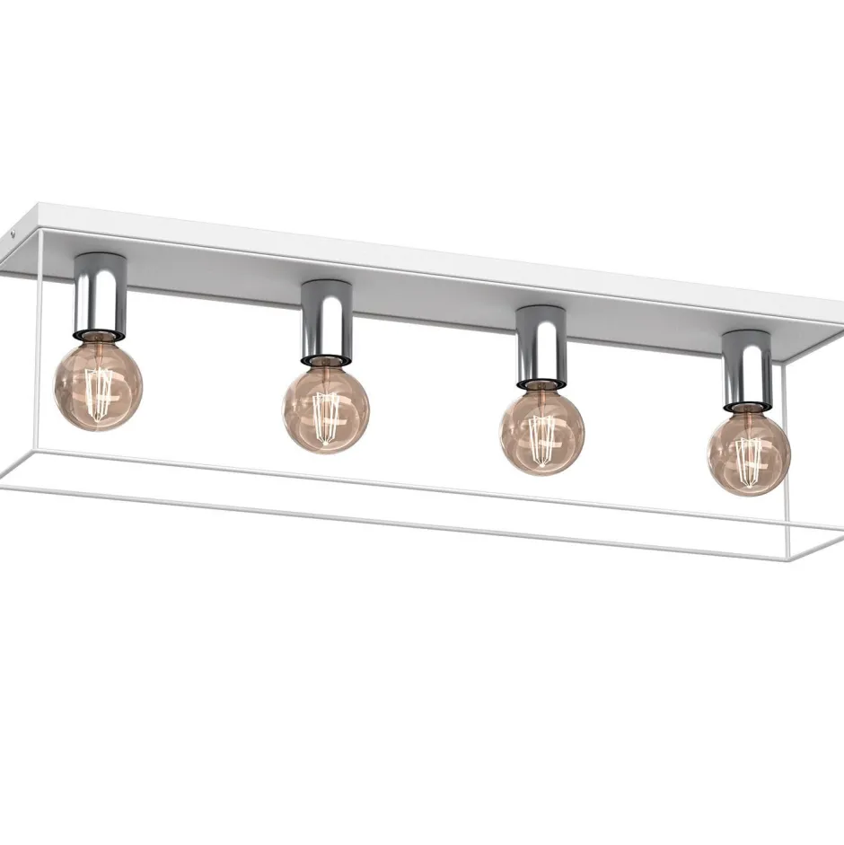 Industrie Deckenleuchte aus lackiertem Stahl in Weiß und Chrom