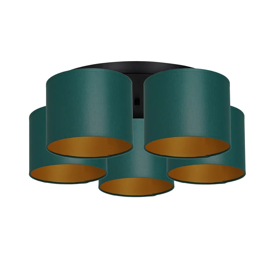 Zeitlose Deckenlampe aus lackiertem Stahl, Stoff und Kunststoff in Petrol und Gold