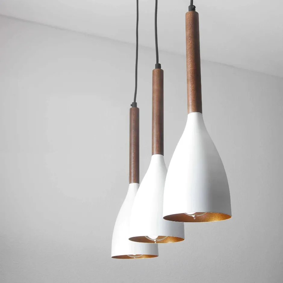 Wohnliche Pendelleuchte aus Holz und Metall für Esszimmer, Wohnzimmer und Küche