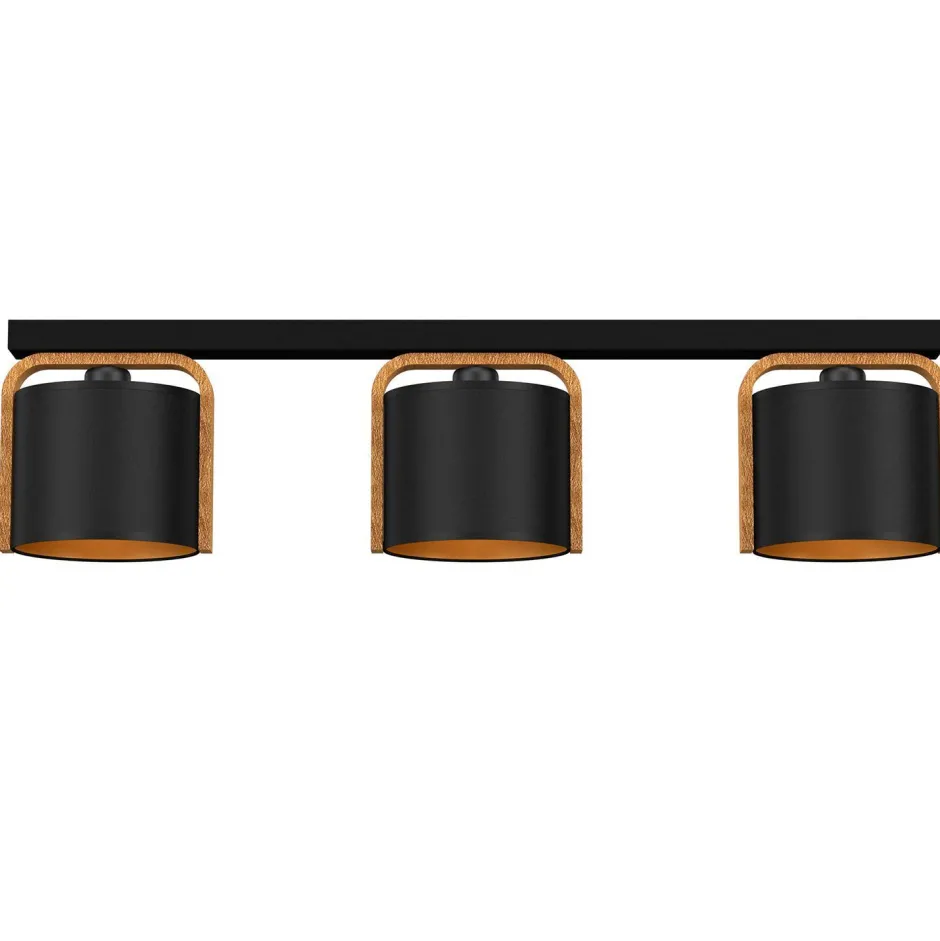 Moderne Deckenlampe aus lackiertem Stahl, Holz und Stoff in Schwarz