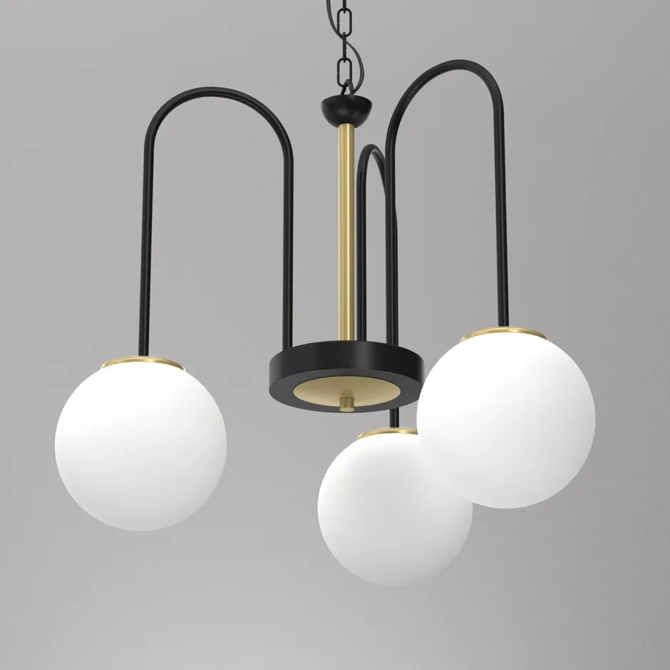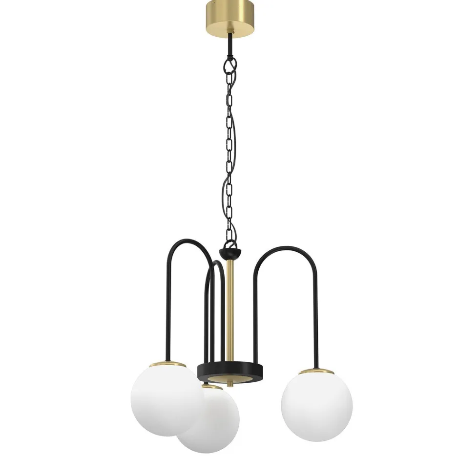 Moderne Hängelampe aus lackiertem Stahl und Glas in gebürstetem Messing, Schwarz und Weiß
