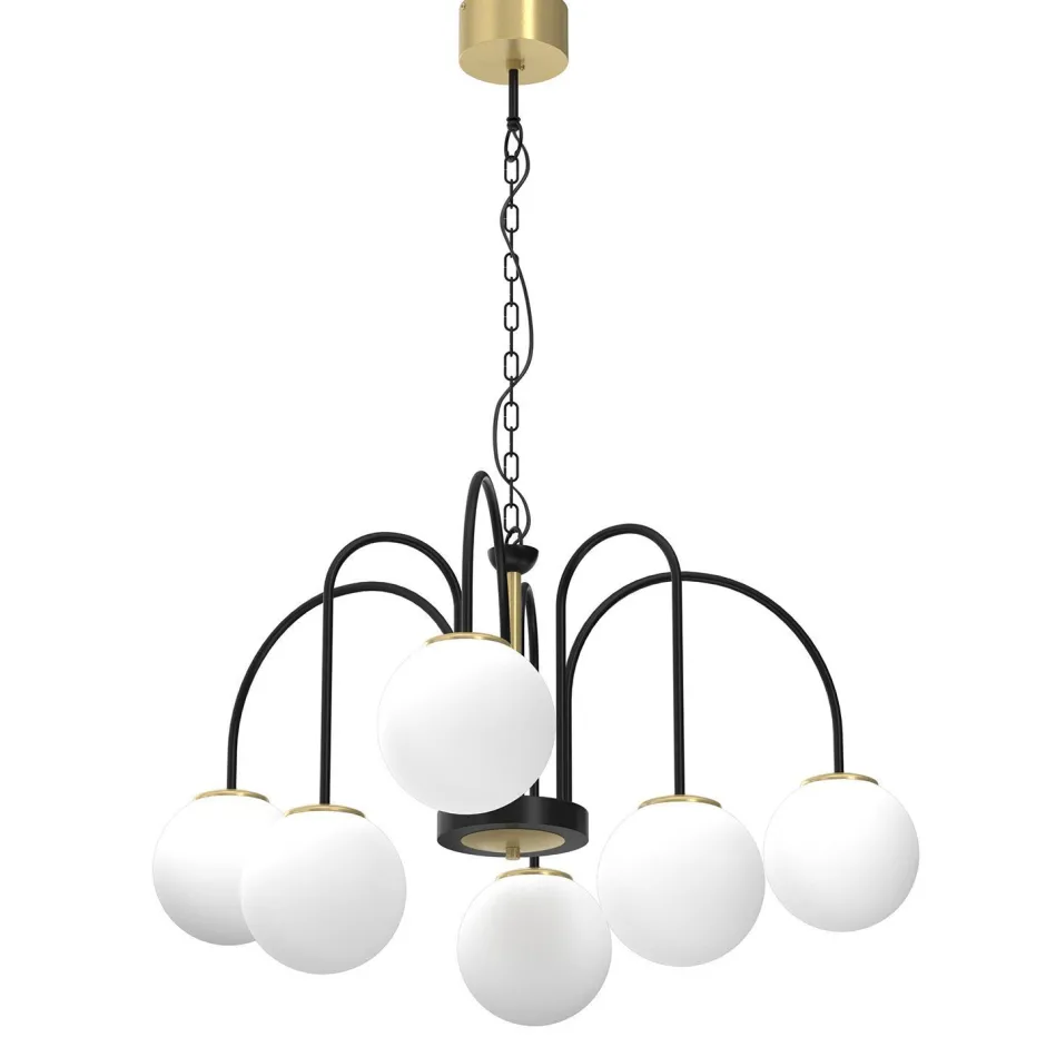 Moderne Hängelampe aus lackiertem Stahl und Glas in gebürstetem Messing, Schwarz und Weiß