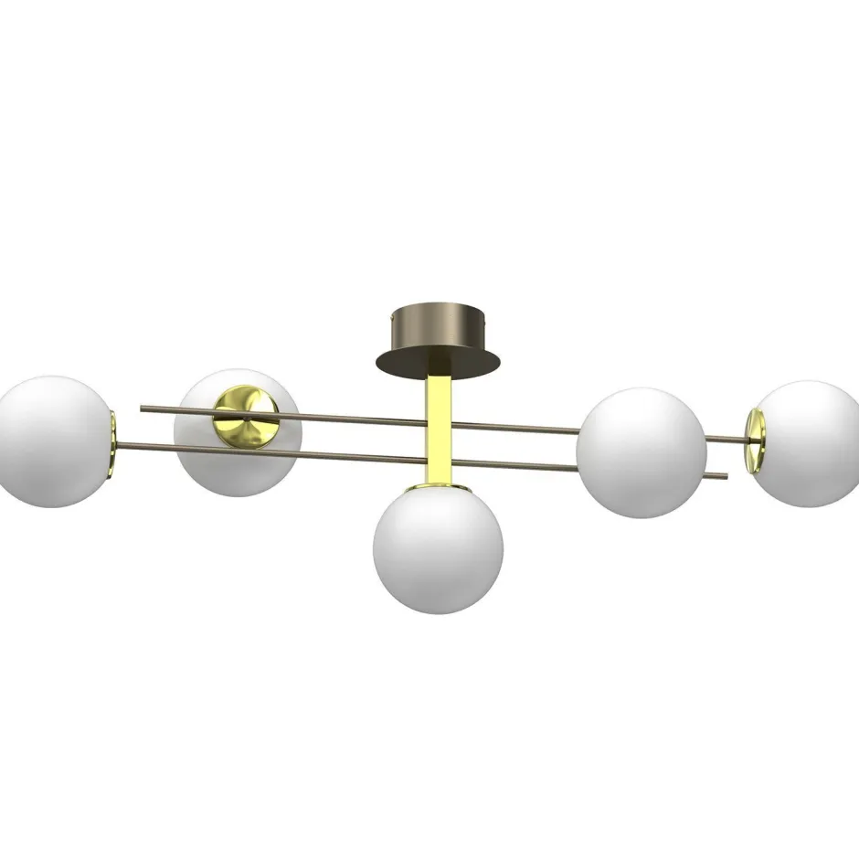 Moderne Deckenlampe aus lackiertem Stahl in Titanium Gold und Weiß