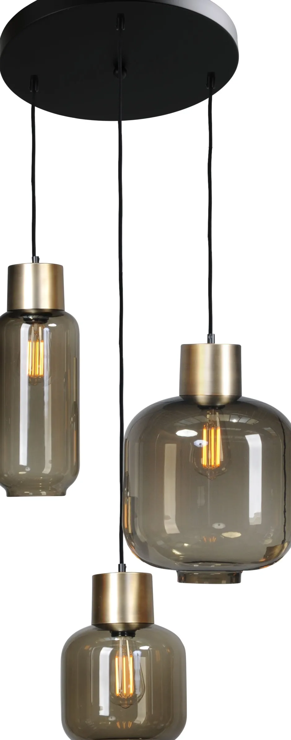 Form und Farbe verleihen den Glasschirmen einen besonderen Look, was aus der Hängelampe einen absoluten Blickfang macht