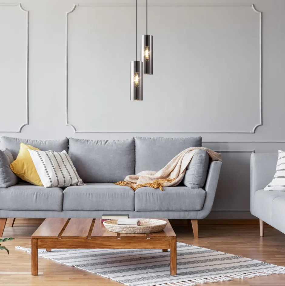Das Rauchglas verleiht der Hängelampe einen dekorativen Look, der ideal in Küche, Esszimmer und Wohnzimmer passt