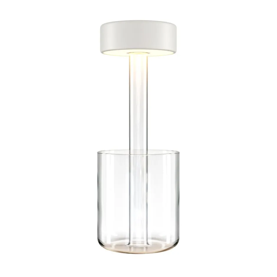 Tragbare LED Akku Tischlampe aus Glas und Metall im modernen Design – keine Kabel, keine Stecker!
