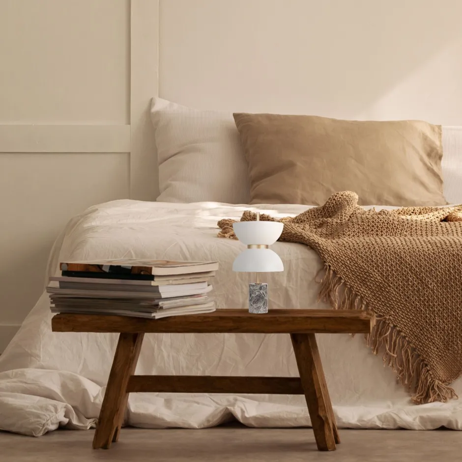 Das Licht der Tischlampe wird blendarm gestreut und sorgt für eine angenehme Beleuchtung – ideal als Nachttischlampe oder als Ambientebeleuchtung auf dem Sideboard oder dem Konsolentisch