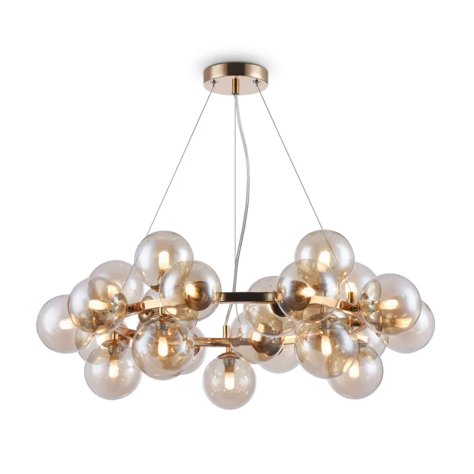Große Pendelleuchte mit Kugelschirmen aus Rauchglas