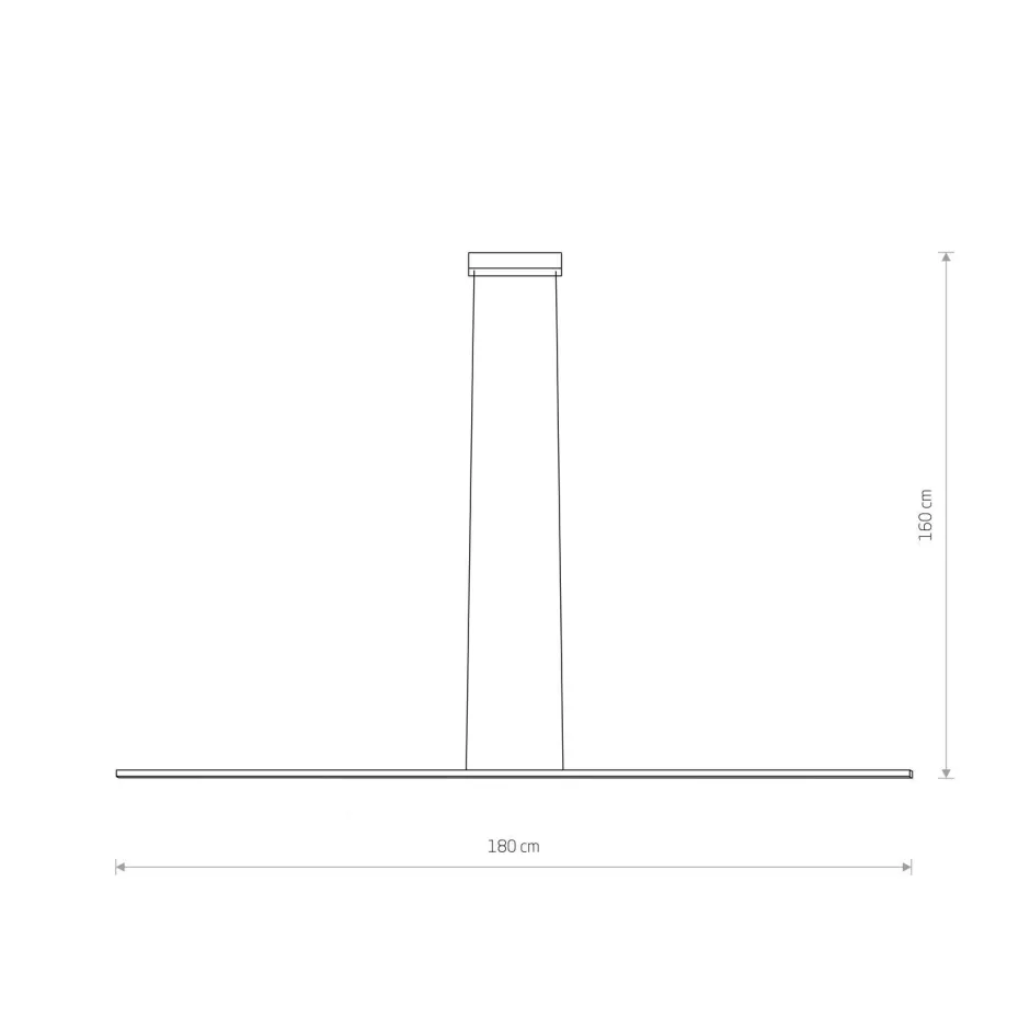| Maße: | Breite: 19 mm | Hängetiefe: 1600 mm | Länge: 1800 mm | Höhe Schirm: 19 mm | Durchmesser Sockel/Wandhalterung: 40 mm |