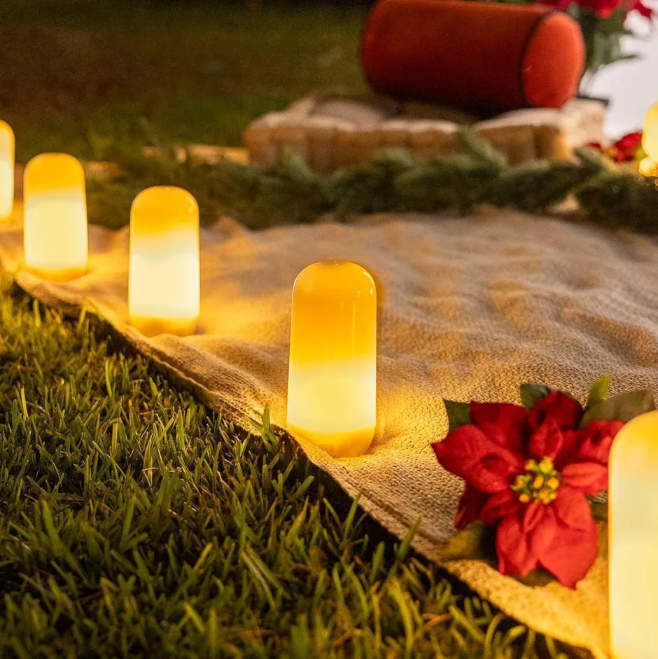 Die kleine Dekolampe sorgt für ein extra warmes Licht, das individuell zwischen Dauerlicht und Flammeneffekt eingestellt werden kann – für dekorative Momente auf Balkon, Terrasse und im Garten