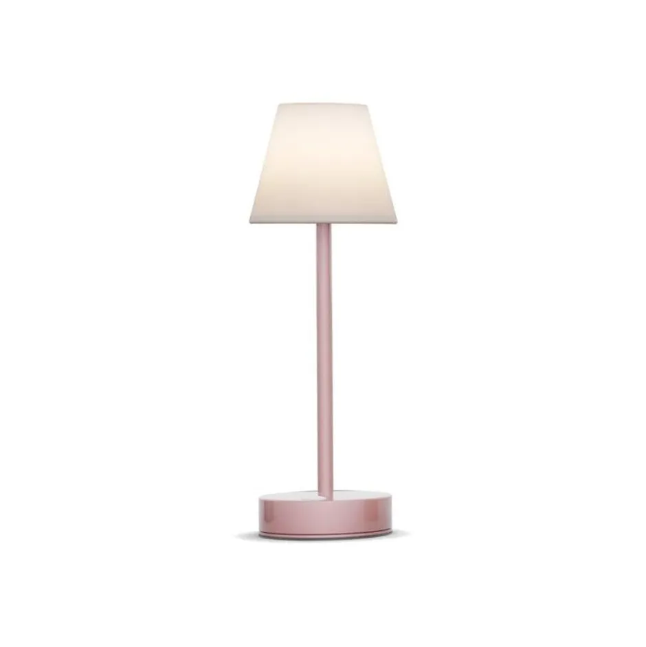 Tragbare Akku Tischlampe mit LED Leuchtmittel in Rosa für Balkon, Terrasse und Garten