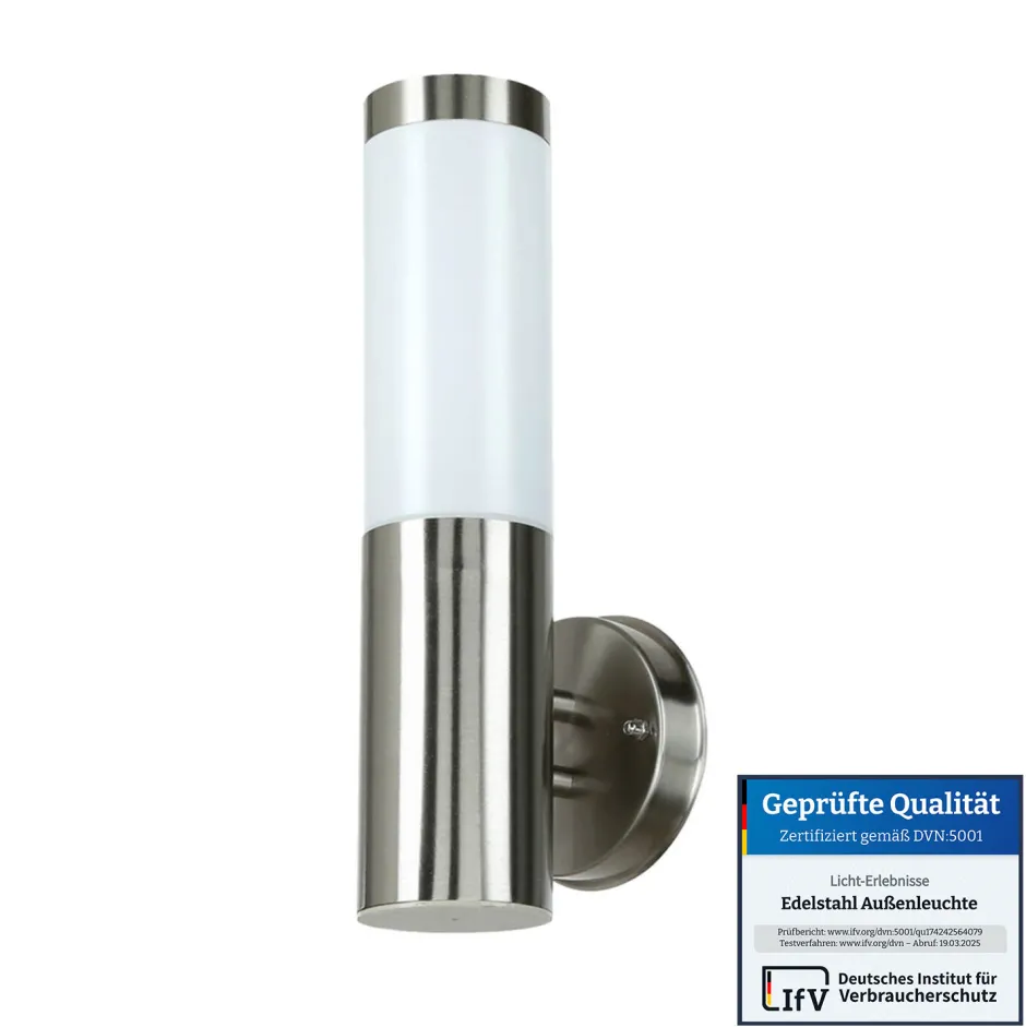 Die witterungsbeständige Außenleuchte aus Edelstahl ist ideal, um Einfahrt, Balkon oder Terrasse zu beleuchten