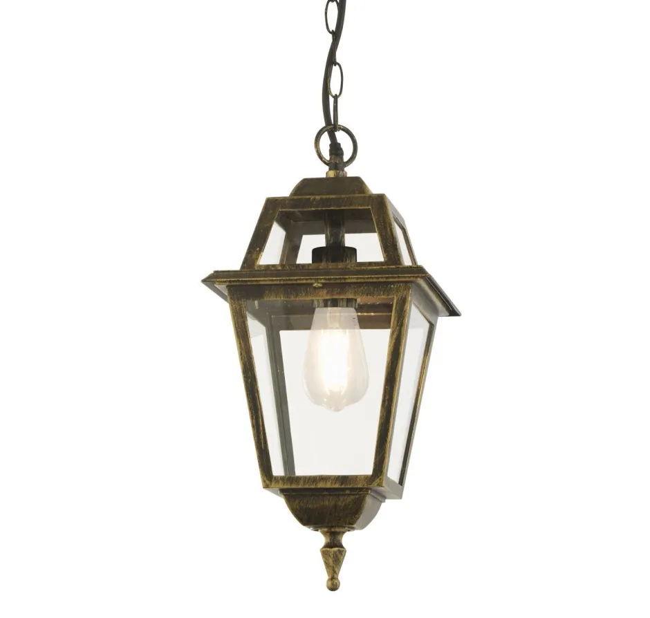 Vintage Outdoor Pendelleuchte aus Aluminium und Glas in Gold