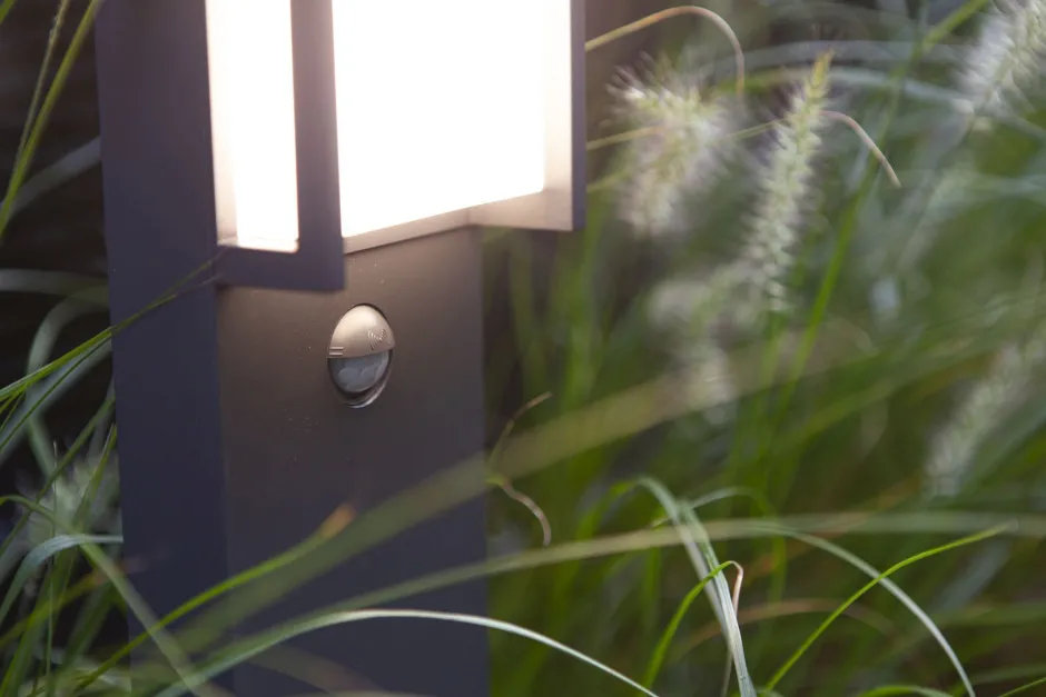 Dank praktischem Bewegungsmelder schaltet die Außenlampe erst bei Einbruch der Dämmerung für eine effiziente Beleuchtung