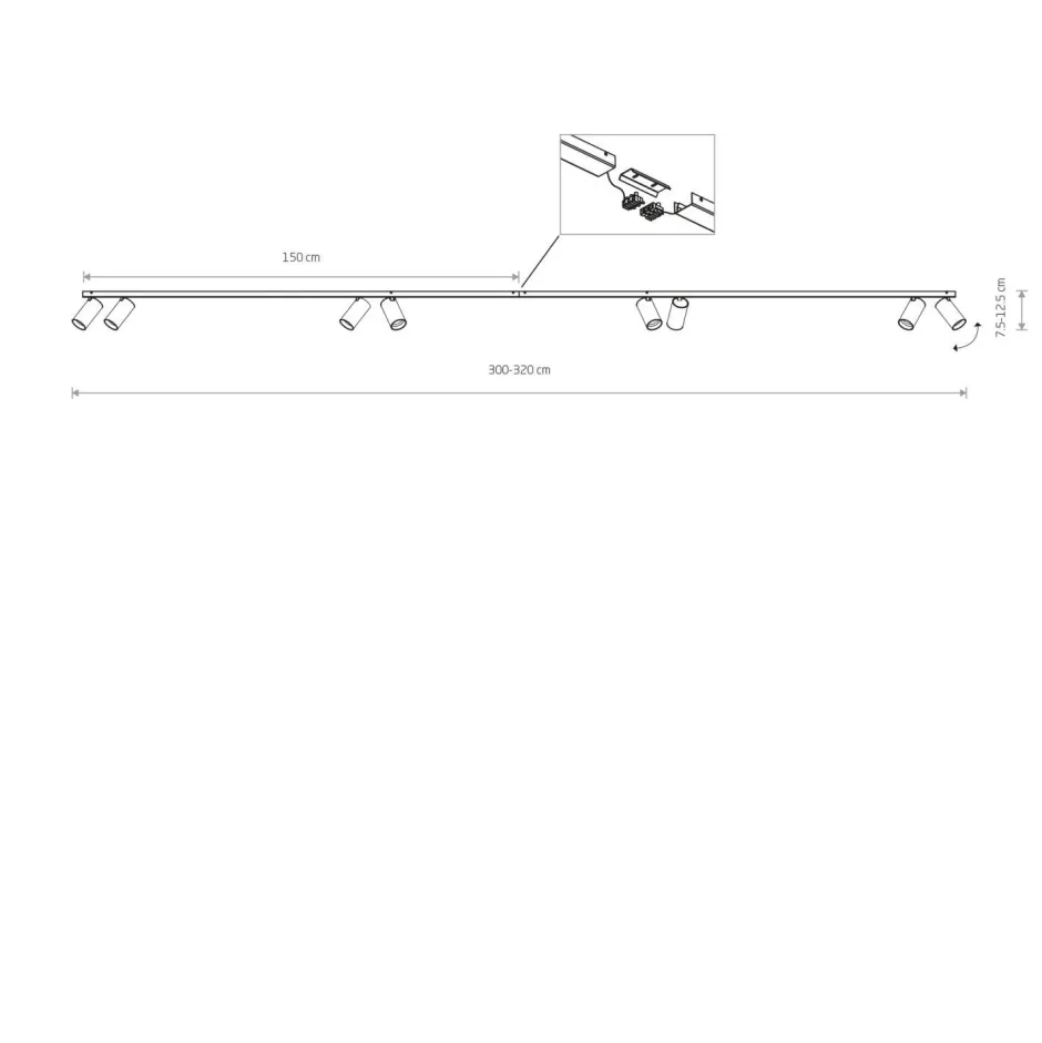 | Maße: | Breite: 65-125 mm | Höhe: 75-125 mm | Länge: 3000-3200 mm | Durchmesser Schirm: 55 mm | Höhe Schirm: 105 mm |
