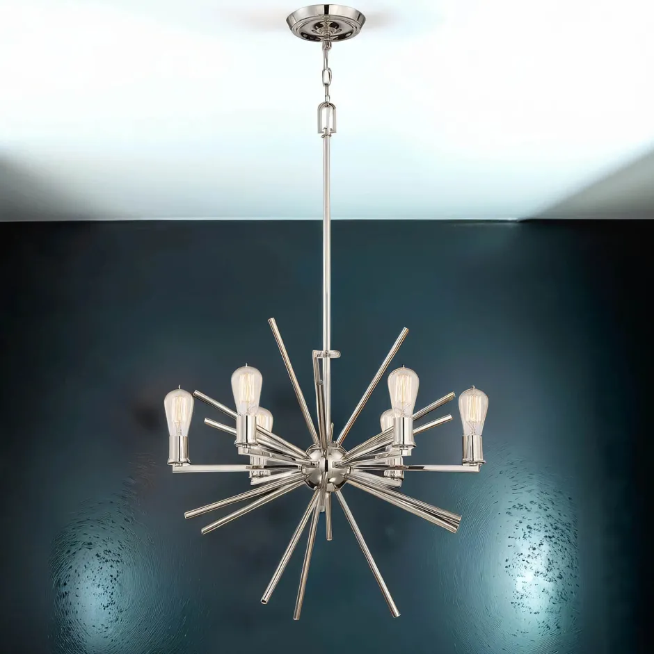 Moderner Kronleuchter in Silber mit 6 Armen