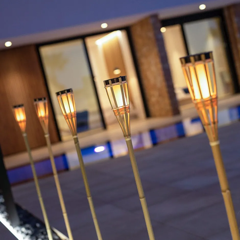 Für eine romantisches Ambiente sorgt der Flammeneffekt, der den Eindruck echter Außenfackeln erweckt – ein dekoratives Highlight in jedem Außenbereich
