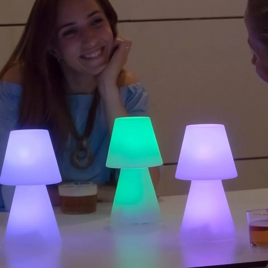 Die kabellose Tischleuchte sorgt durch die einstellbare Lichtfarbe und Helligkeit für eine stimmungsvolle Beleuchtung – ein besonderer Blickfang für Partys (Fernbedienung inklusive)
