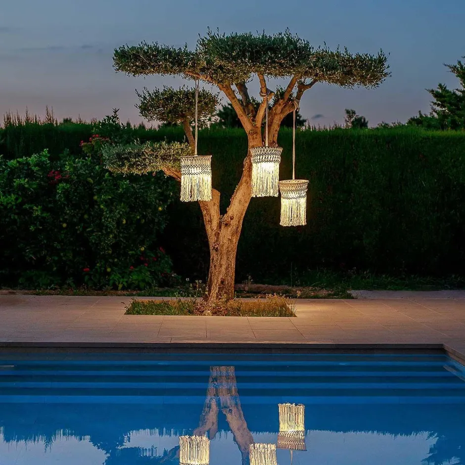 Das Highlight der Outdoor Hängelampe ist nicht nur der dekorative Lampenschirm aus Baumwolle, sondern das tragbare und wiederaufladbare LED Leuchtmittel, das über seinen Haken einfach eingehängt und abgenommen werden kann (Leuchte hat keine eigene Fassung)