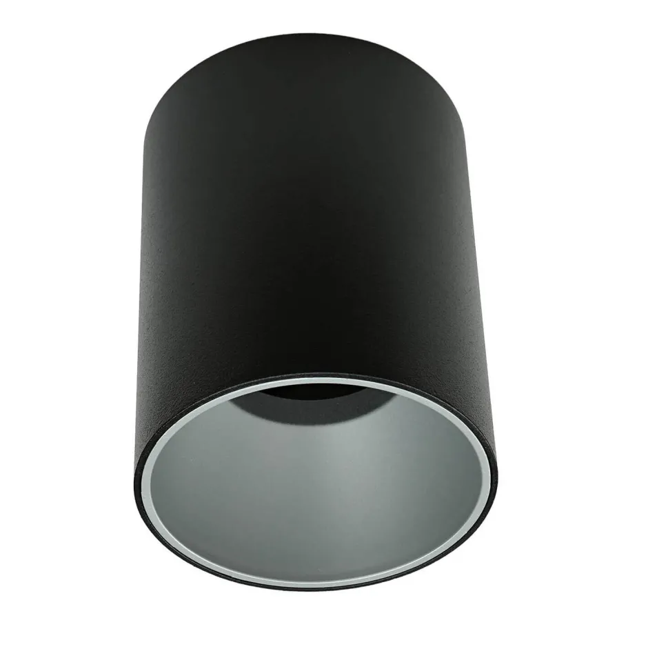 Moderne Deckenleuchte in Schwarz und Silber mit Metallkorpus und Kunststoffeinsatz