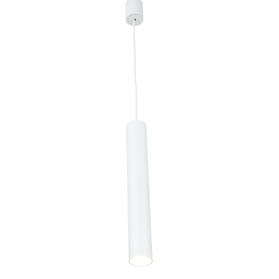 Schmale Pendelleuchte aus Metall in Weiß