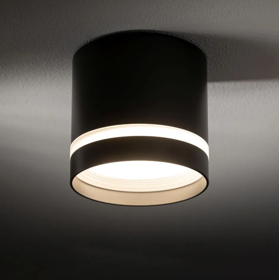Die runde Deckenlampe sorgt für einen schmalen n Lichtkegel, was eine punktuelle Beleuchtung erlaubt