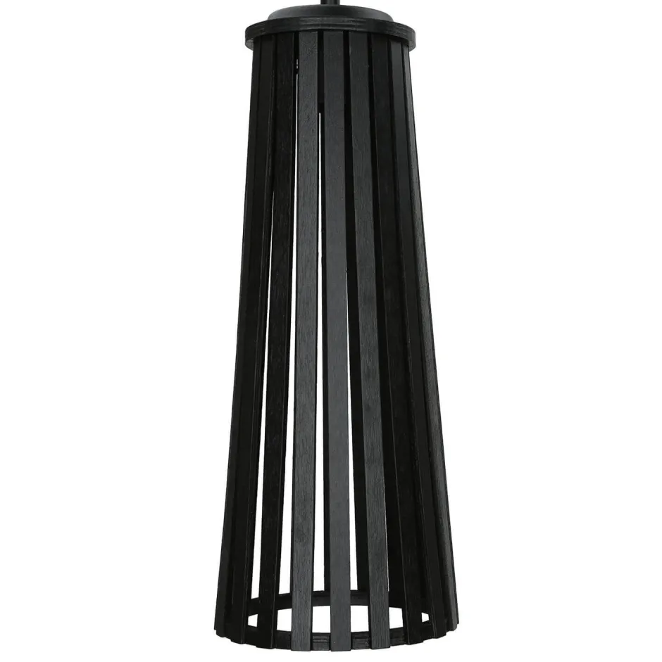 Der Holz Schirm sorgt durch seine offene Form für ein besonderes Spiel aus Licht und Schatten (klare Leuchtmittel versärken den Effekt, matte schwächen ihn ab)