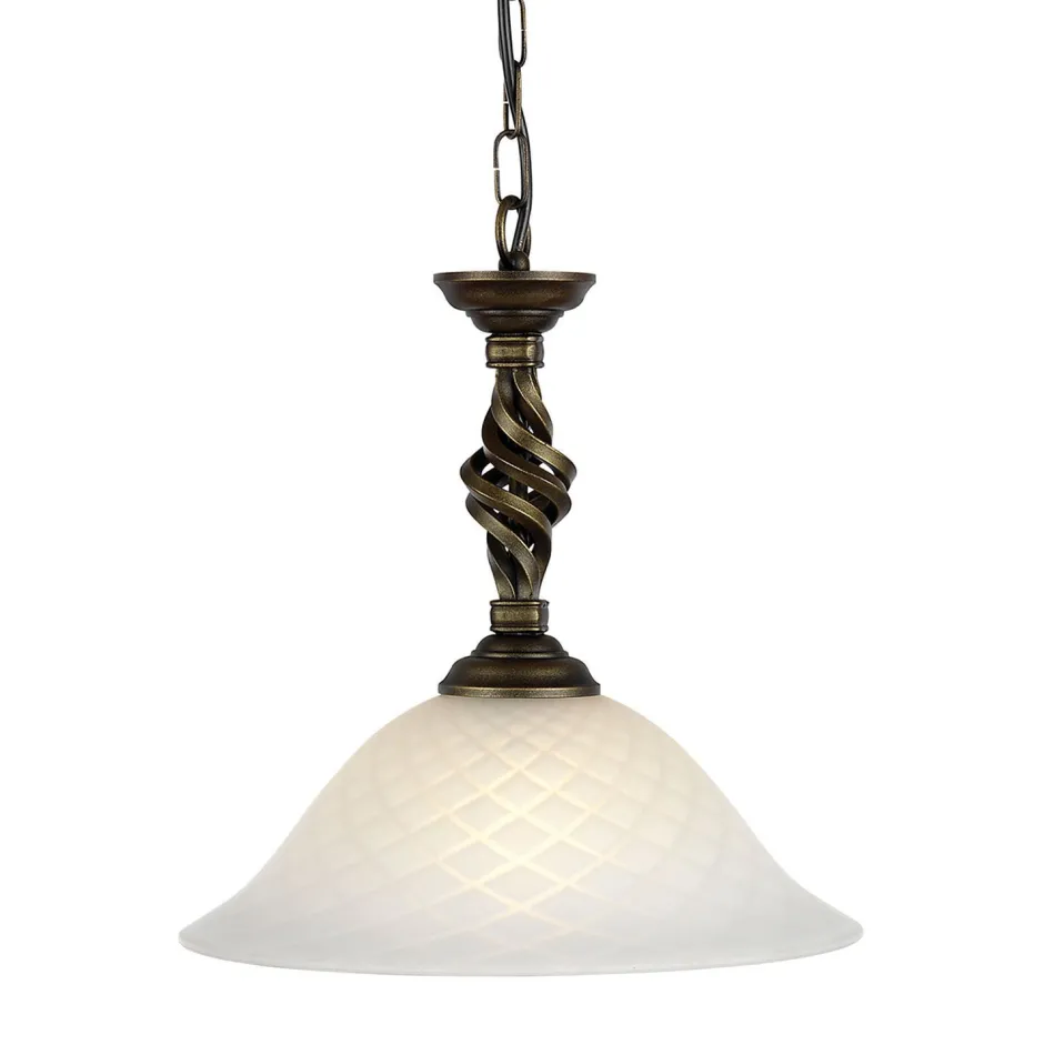 Rustikale Pendelleuchte in Weiß und Schwarz-Gold antik mit eleganten Verzierungen