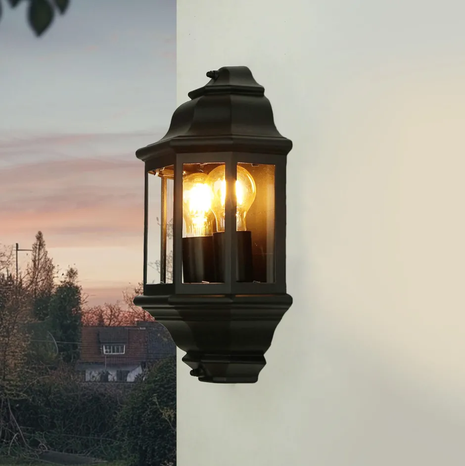 Die Außenlampe in Schwarz besteht aus witterungsbeständigem Aluminiumdruckguss und robustem Glas
