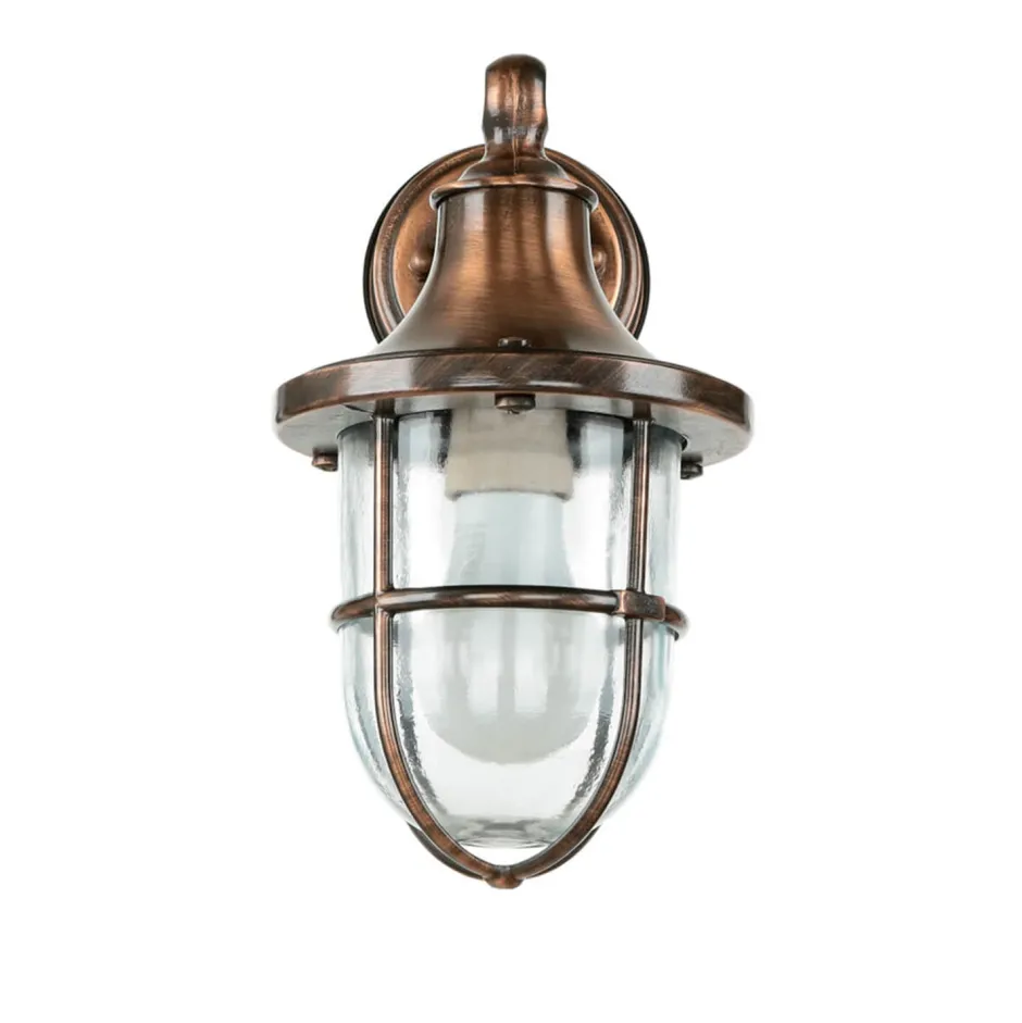 Rustikale Außenwandleuchte aus massivem Messing und Glas