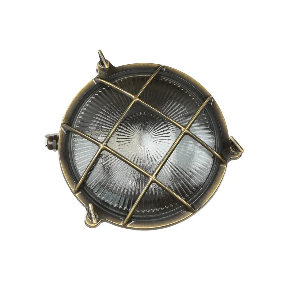 Maritime Außenwandlampe aus massivem Messing im Stil eines antiken Bullauges