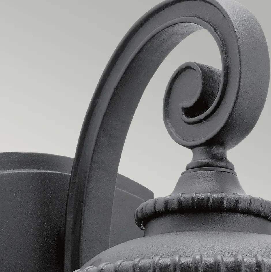 Fein gearbeitete Ornamente dekorieren die Außenlampe und verleihen ihr ein majestätisches Aussehen