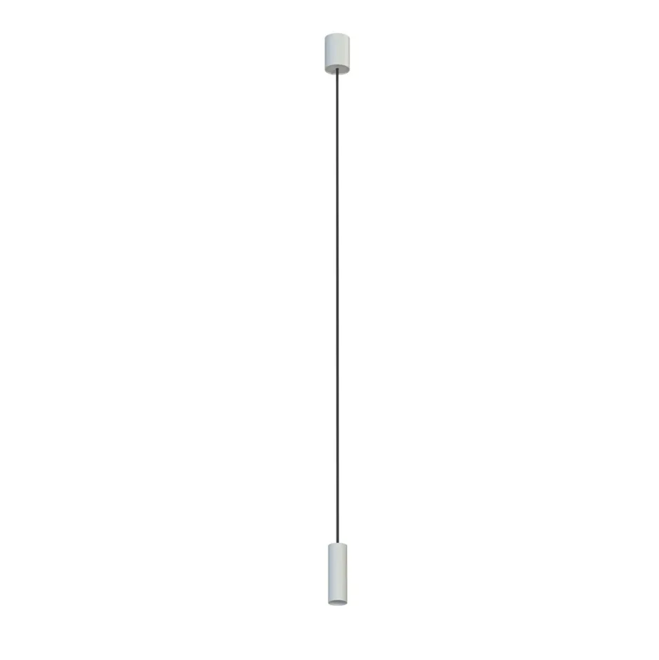 Schmale Pendelleuchte aus Metall in hellem Grau