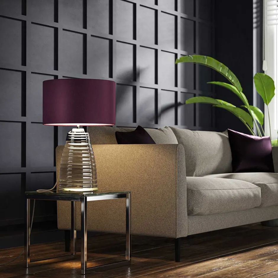 Stilvolle Tischleuchte mit beleuchtetem Sockel aus klarem Glas