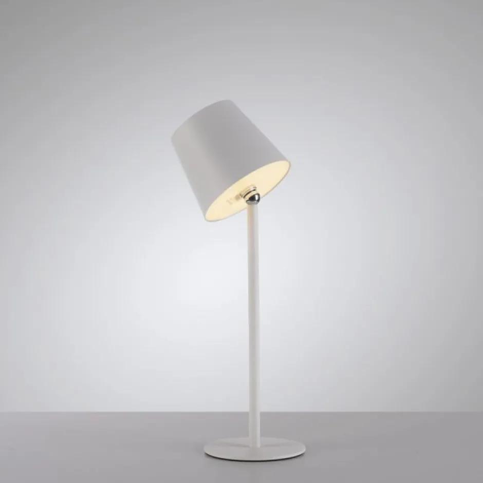 Moderne LED Akku Tischleuchte aus Metall in Weiß