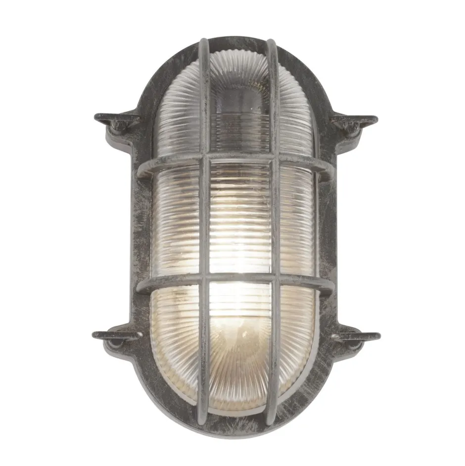 Das Design erinnert an ein antikes Bullauge, was die Außenlampe zu einem dekorativen Blickfang macht