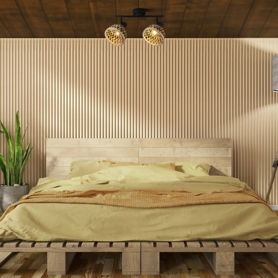 Boho Deckenstrahler mit dekorativen Lampenschirmen aus Bambus Geflecht