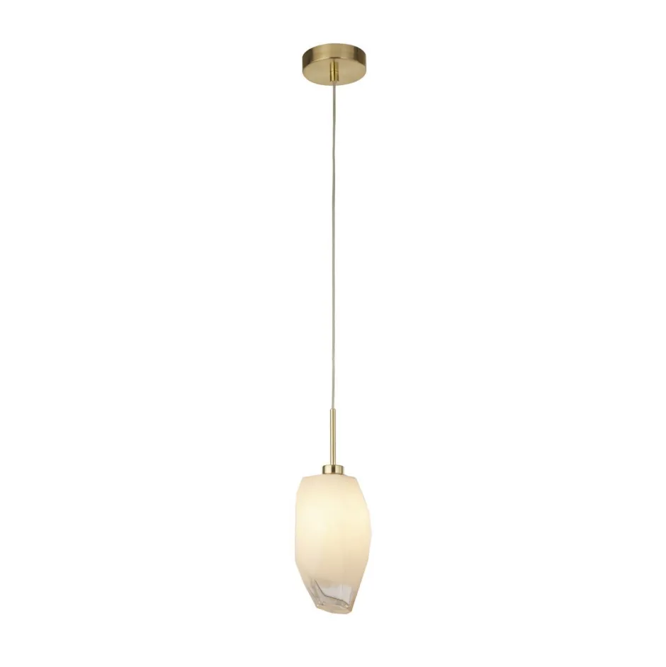 Moderne Hängelampe aus Stahl und Glas in Messing