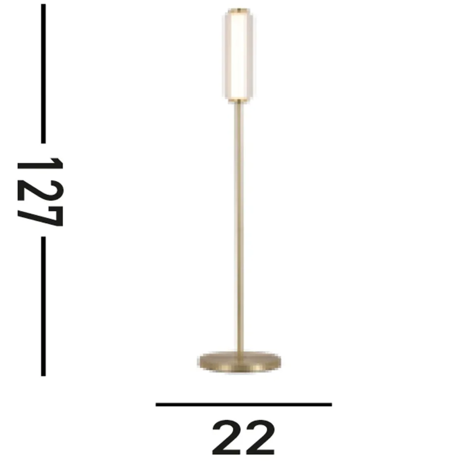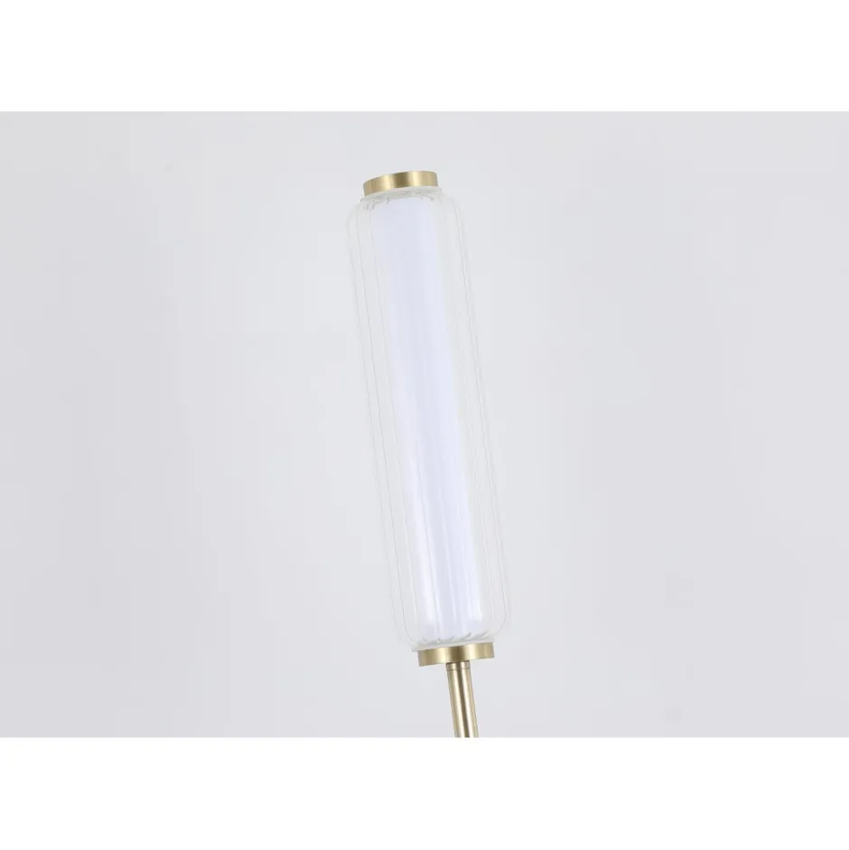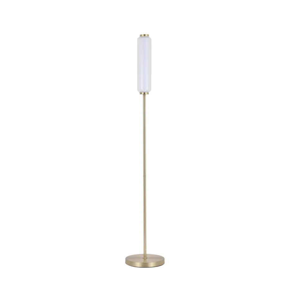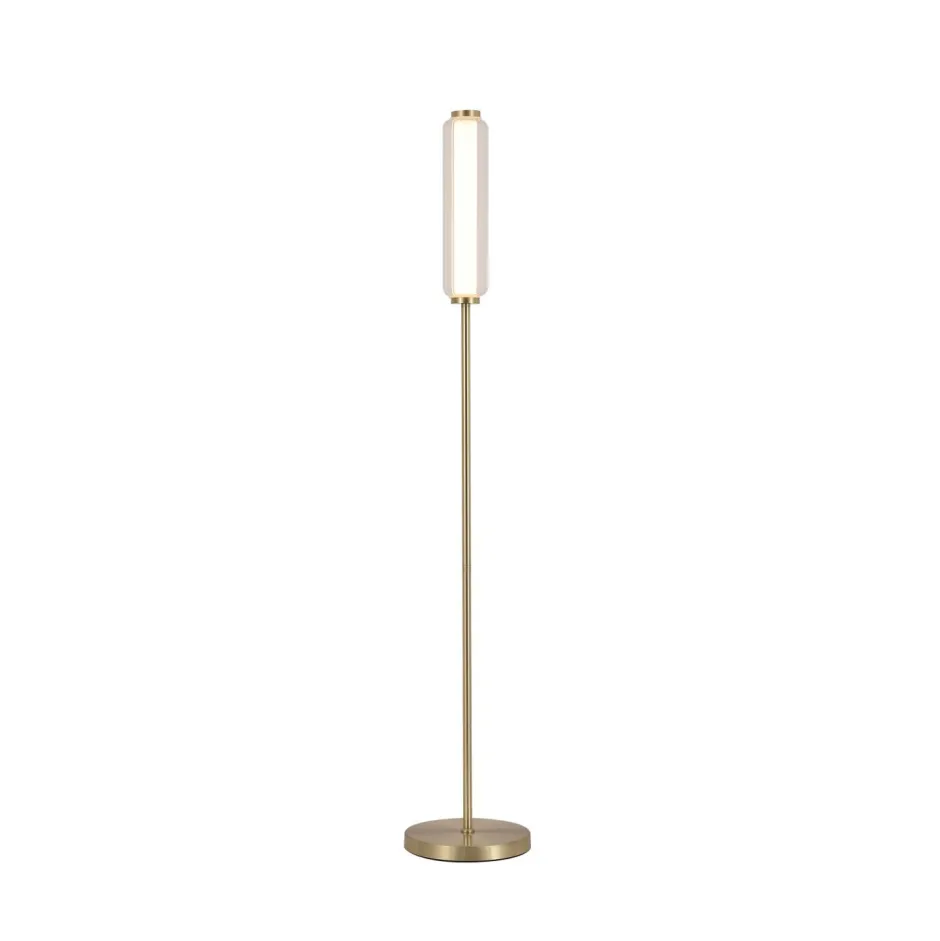 Moderne LED Stehlampe aus Stahl und Glas in Messing