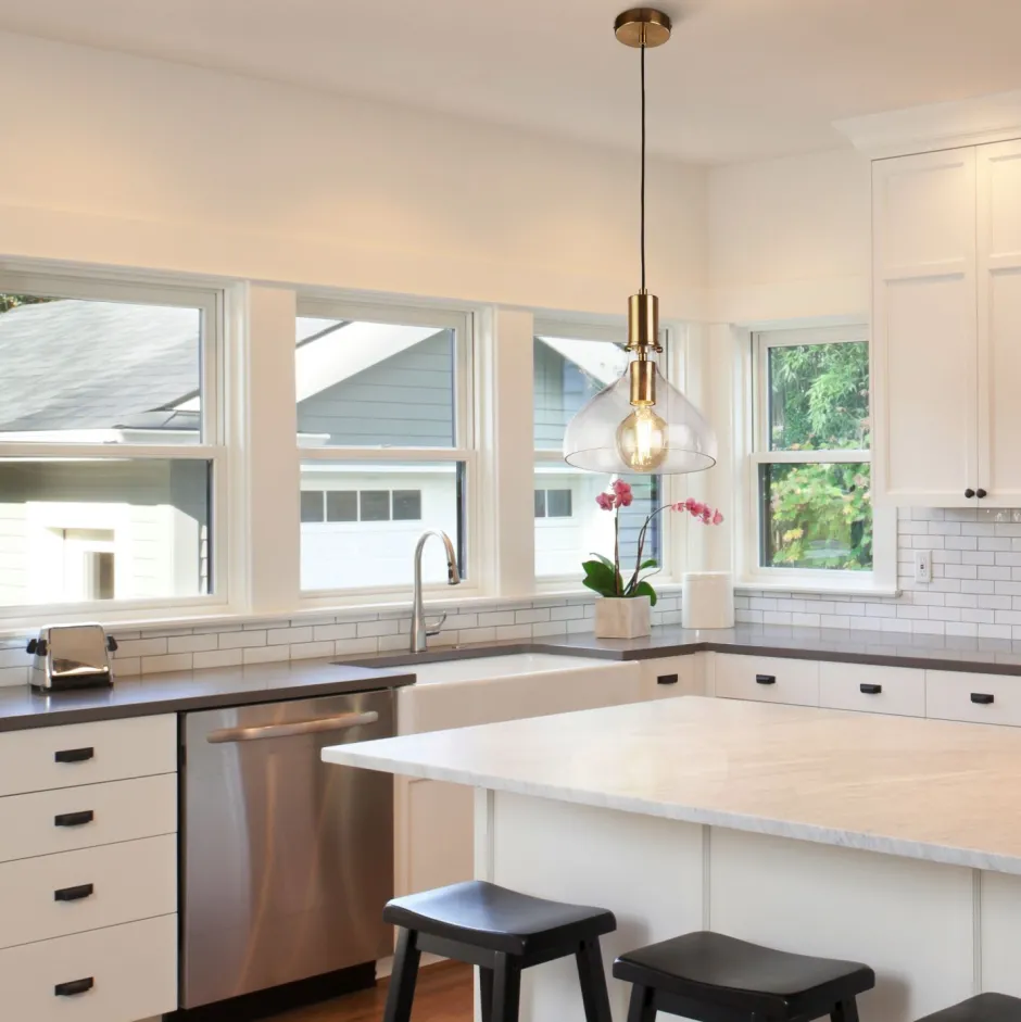 Die Farbe Messing unterstreicht das antike Industrial Design und verleiht der Hängelampe einen edlen Charakter – ein dekorativer Blickfang in Wohnzimmer, Esszimmer und Küche