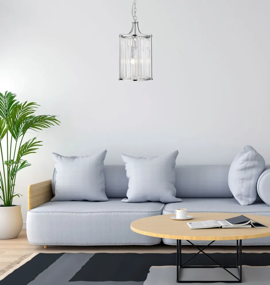 Die funkelnden Glas Kristalle sorgen für einen dekorativen Look und verleihen der Hängelampe den Glanz der 1920er Jahre – ein absolutes Highlight in jedem Raum