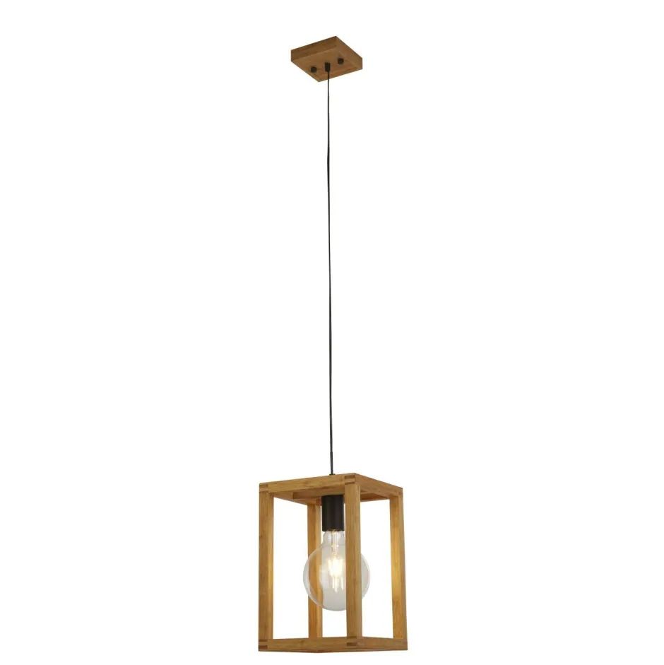 Wohnliche Pendelleuchte aus Bambus und Metall in Natur und Schwarz