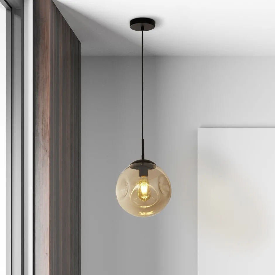 Stilvolle Pendelleuchte mit Kugelschirm aus Rauchglas