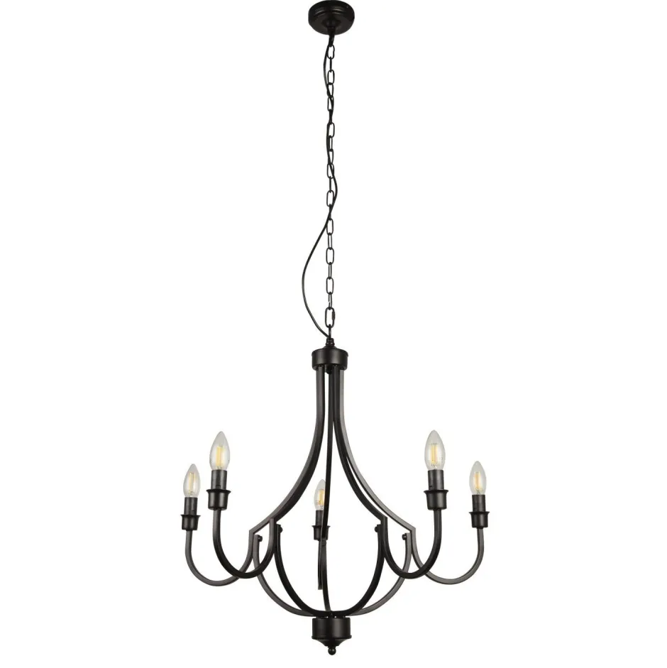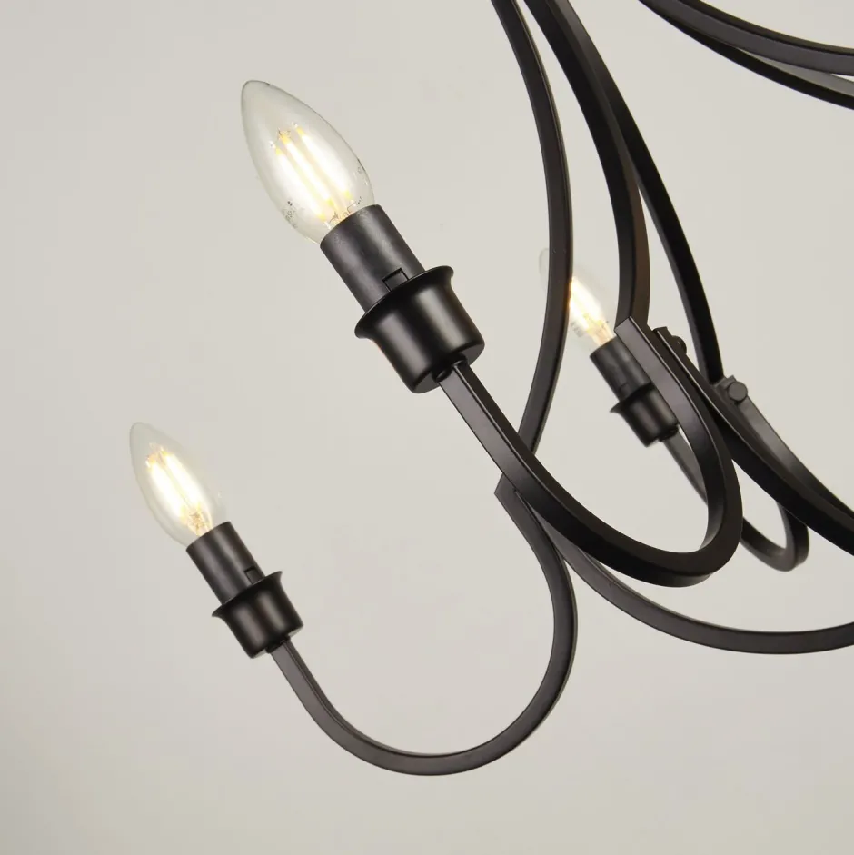 Das Schwarz betont den Look eines antiken Lüsters und erweckt den Eindruck einer schmiedeeisernen Leuchte aus längst vergangener Zeit – ein dekorativer Blickfang für Wohnzimmer und Esszimmer